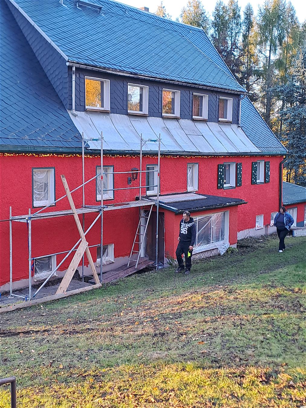 Fassadenarbeiten am Weihnachtsmannhaus